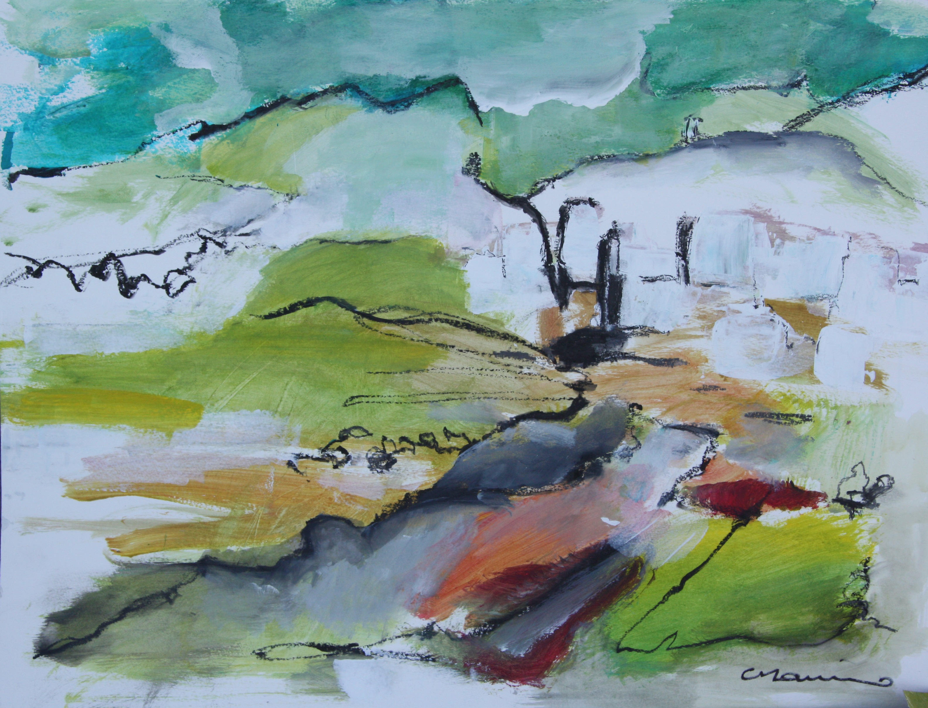 Mon inspiration se nourrit de la nature qui m'entoure : le minéral, le végétal mais aussi l'urbain. Ma démarche peut parfois être plus pensée et faire appel à un cliché pris dans un ailleurs lointain ou proche. Ma peinture traduit d'abord une idée qui se transforme au fur et à mesure sur la toile. Mes oeuvres évoquent un monde imaginaire, parfois idéalisé, libre, poétique à la frontière de l'abstraction.
